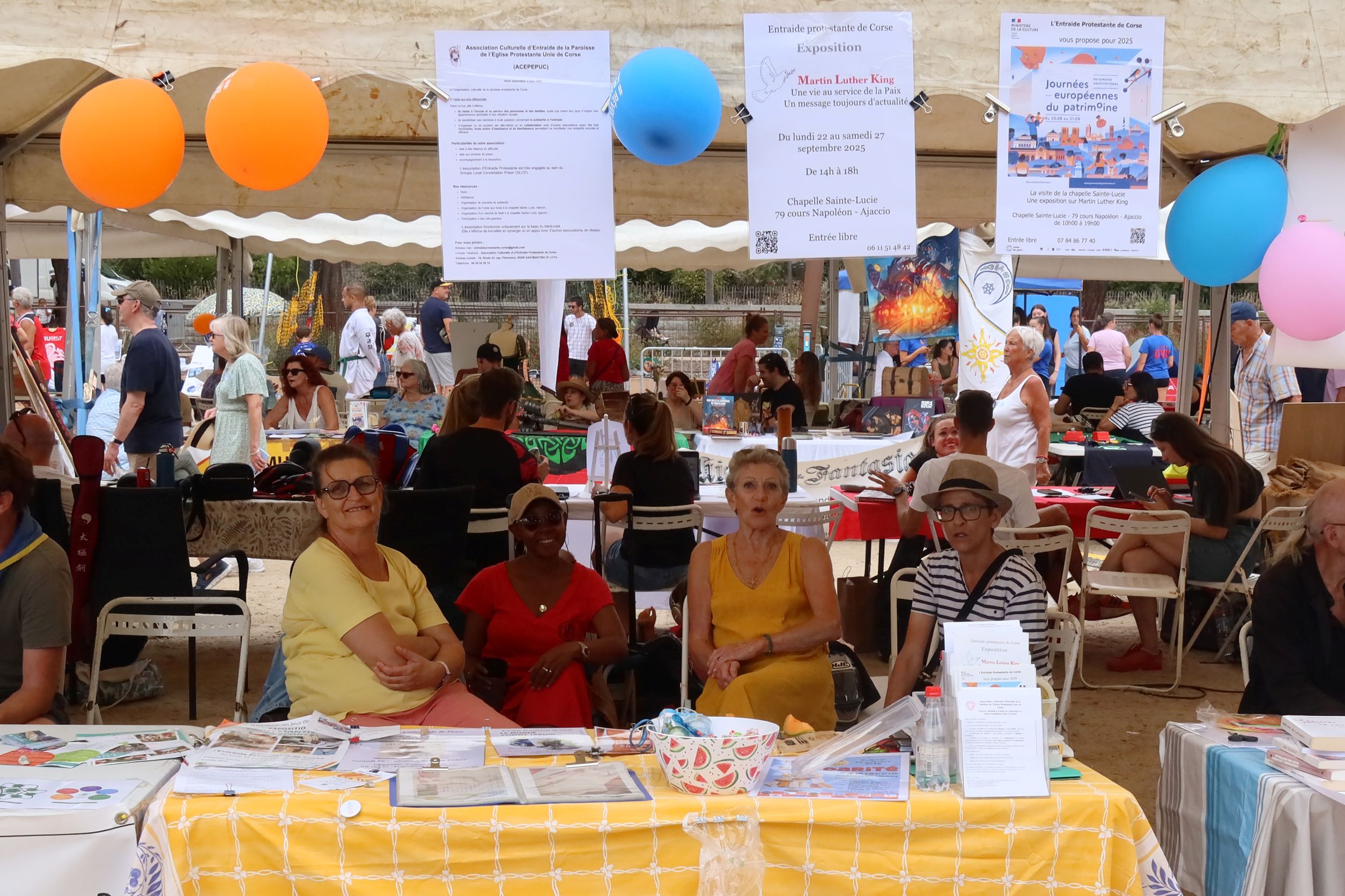Durant huit jours, la chapelle Sainte-Lucie a ouvert ses portes pour en permettre la visite et découvrir une exposition sur Martin Luther King. En tout, près de deux cents personnes sont venues nous rencontrer : touristes, français ou étrangers, Ajacciens, jeunes ou plus âgés, beaucoup de belles discussions. Plusieurs nous ont demandé la version numérique de l’exposition. Un enregistrement audio sera prochainement disponible sur le site.